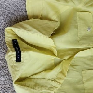 Lightweight, semi-sheer blouse with buttons at cap sleeves as well as both breast pickets, neon yellow.