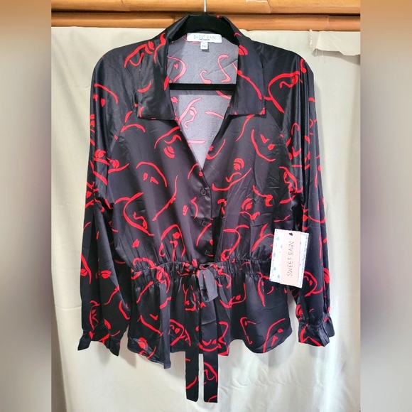 silky top, great for date night.. red & black with a tie ..