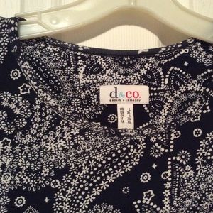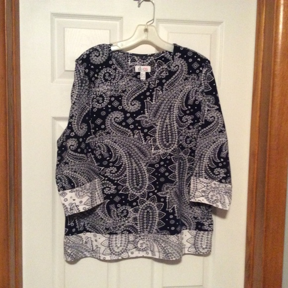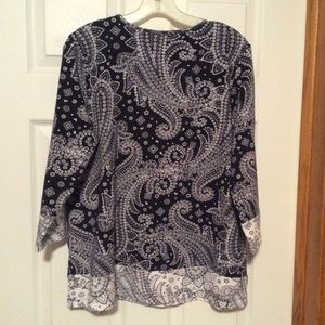 Denim and Co. navy blue and white paisley 3/4 sleeve top, brand new but denim and co doesn’t come with tags, size L, non-smoking home.