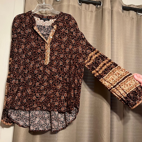 Fall printed shirt. Great for dressing up or down. Buttoned detail up the front.