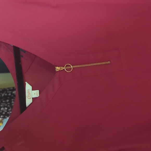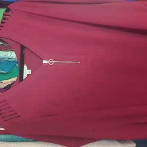 burgundy dress top size medium but fits like a small detailed shoulders zipper in front buttons on sleeves so sleeves are adjustable