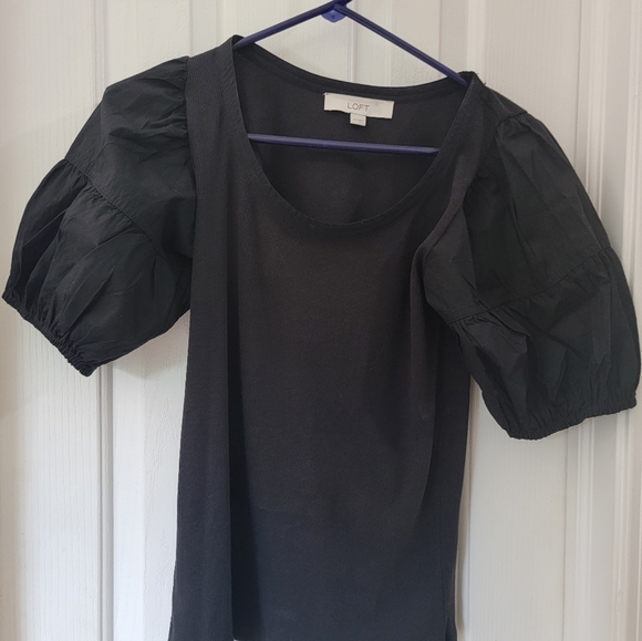 Black ribbed top with cotton puff sleeve - never worn