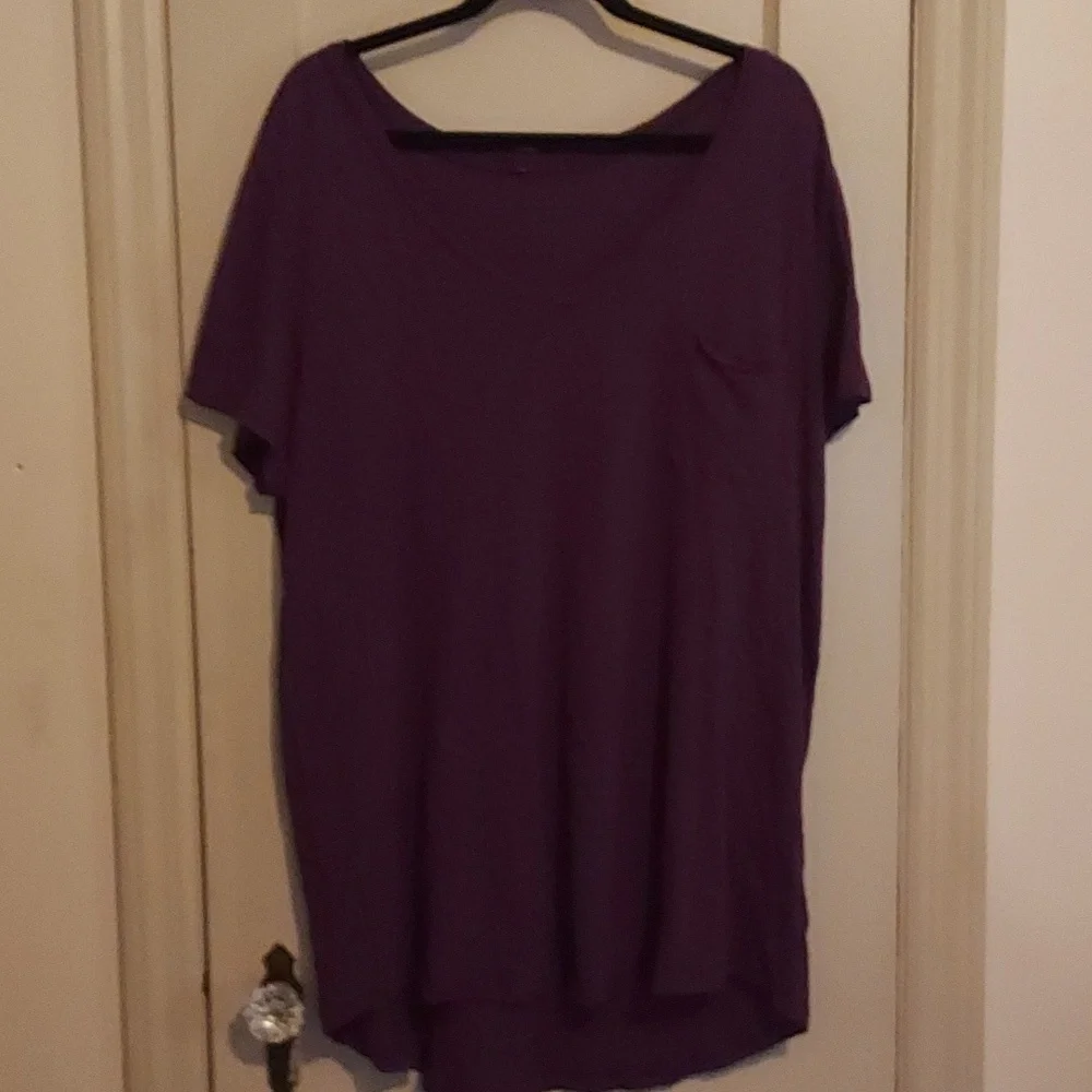short sleeve purple top with pocket