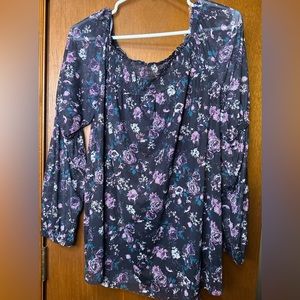 NWT Maurice’s top. Beautiful floral print. Mesh sleeves give a see-through look.