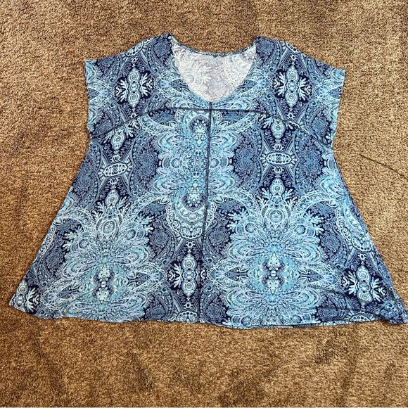 Top with Extra short sleeves, fits like a 2X, I did cut tags off. Still in great shape.