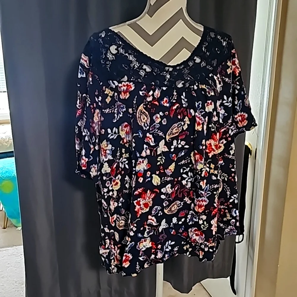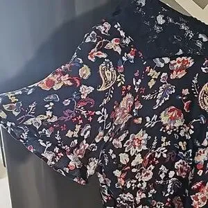 floral top with lace neckline fun and flirty