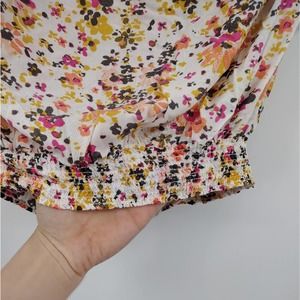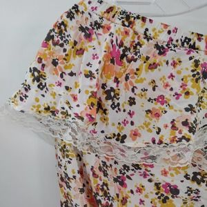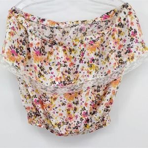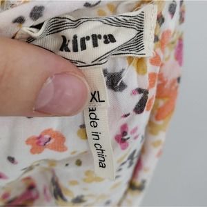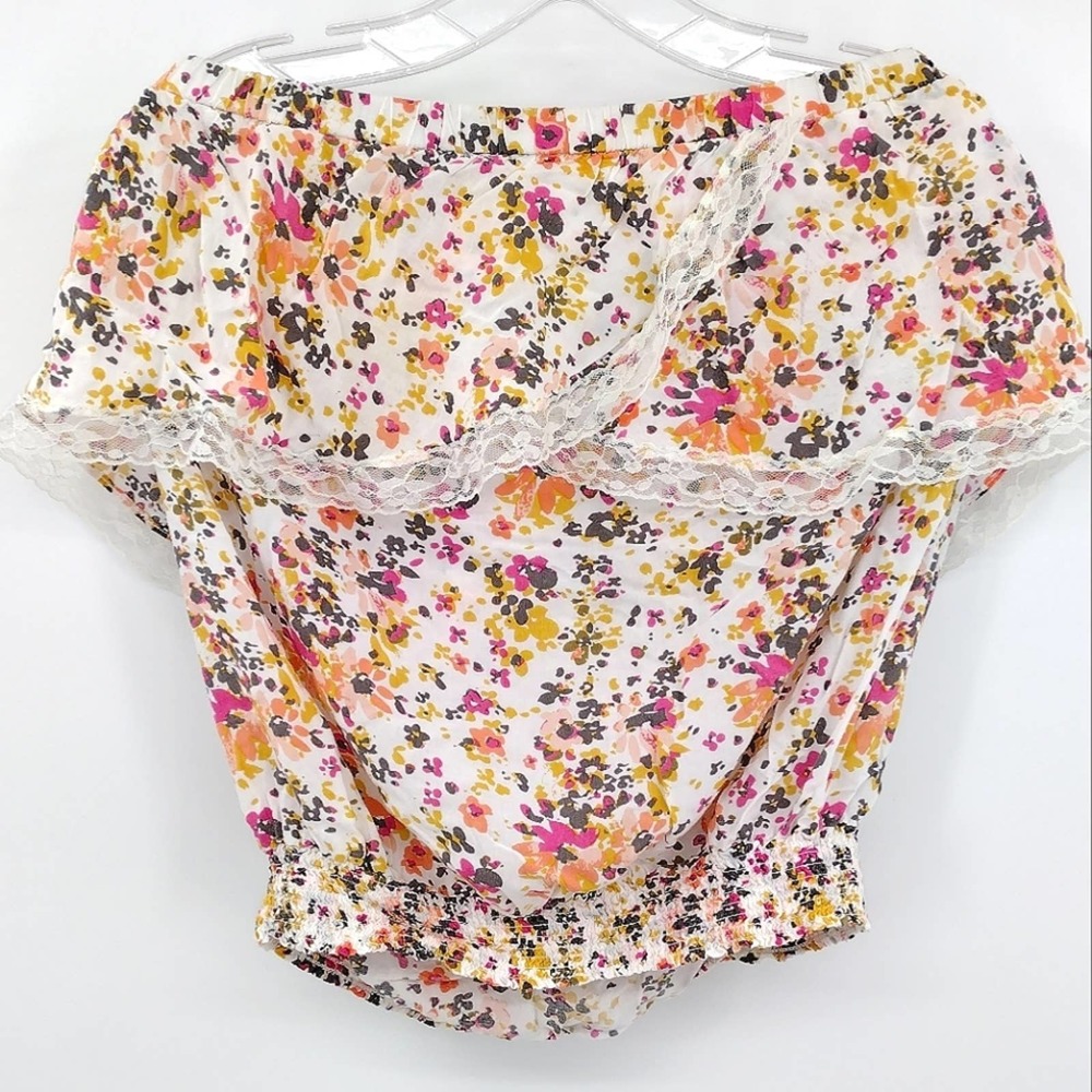 Kirra off the shoulder floral crop top. Features lace detail and a rubber gathered waistband. Size XL. New without tags. Fabric tag is slightly rubbed off.