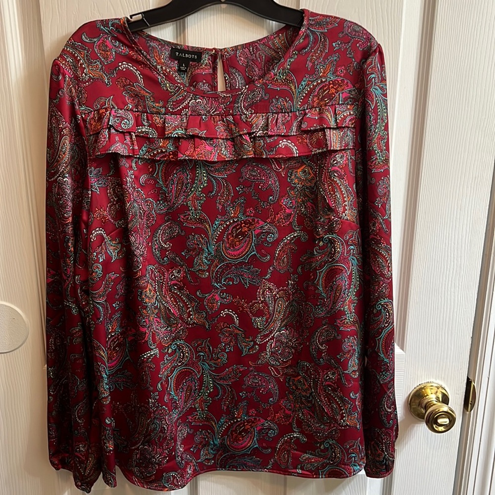 Beautiful paisley top with front ruffles across the top by Talbots. Like you worn once.