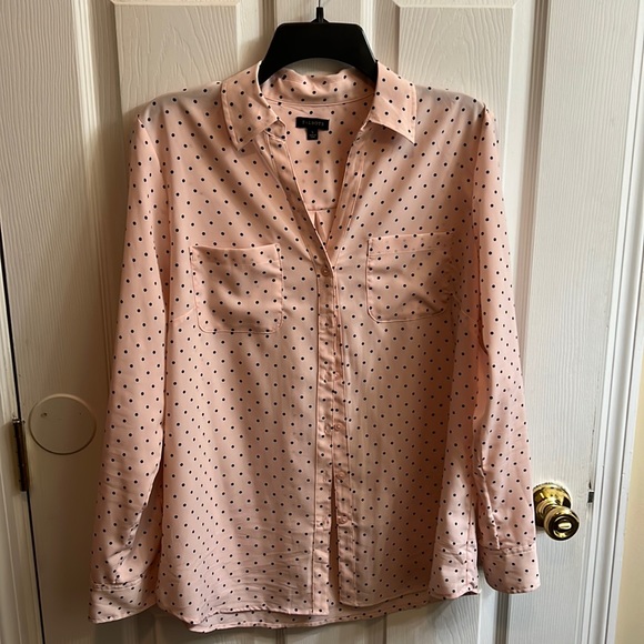 Beautiful pink button-down top by Talbots with black polkadots. Like new worn once.