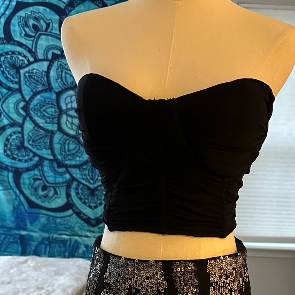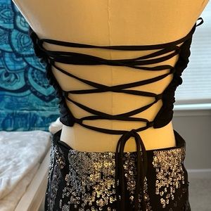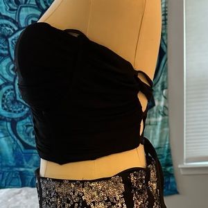 Black back tie halter top