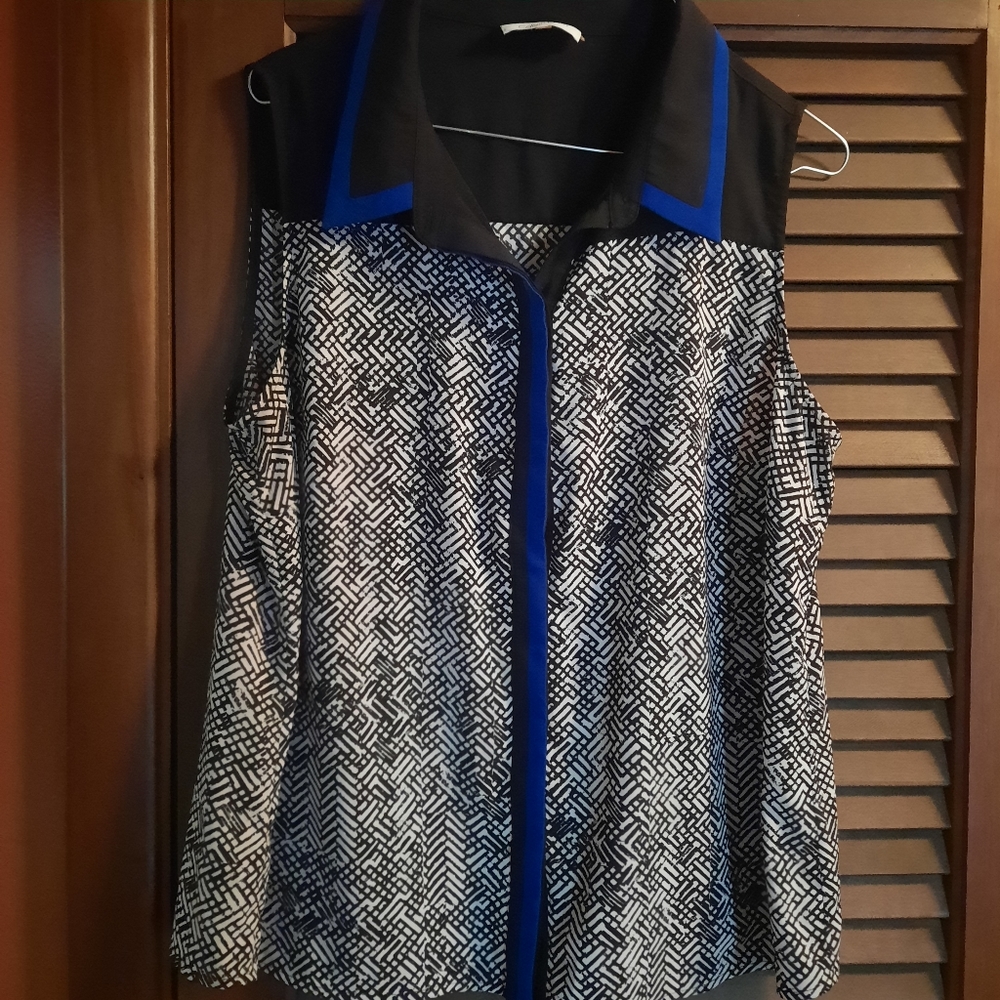 Calvin Klein summer top, Black, blue and white , size large, runs small. 97% polyester 3% spandex no stains, tears or rips