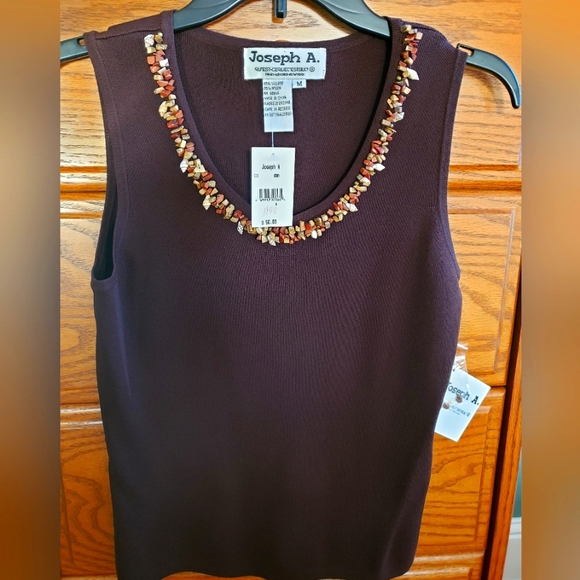 Joseph A. Sleeveless Stretchy Top Embellished With Colored Stones Size M NWT