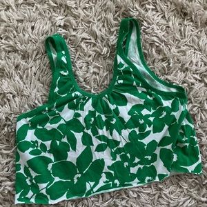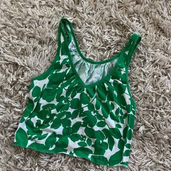 Green and white floral print V-neck 100% cotton Length 16” Pit to pit 15” Size medium