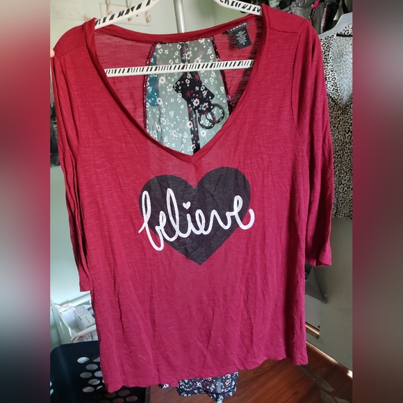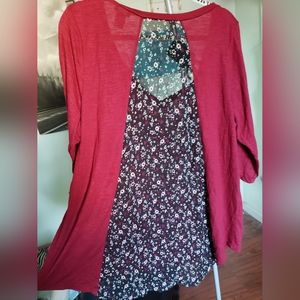 Red flowy top with floral back insert. worn maybe one time.
