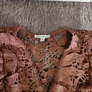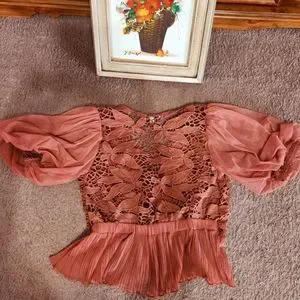 Top, short, with lace. Autumn joy, #rememberthesummer, size L petite, more like an M.