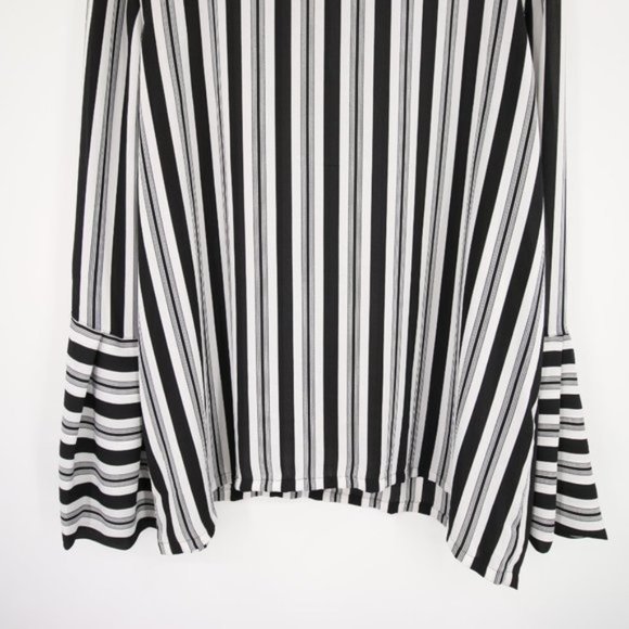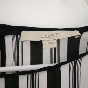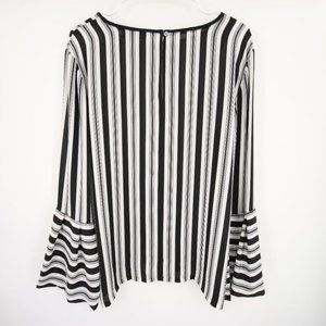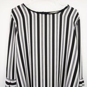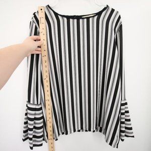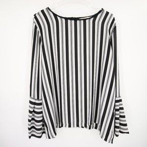 LOFT Black White Striped Long Sleeve Round Neck Professional Career Blouse Bell Sleeve Size Large Great Condition