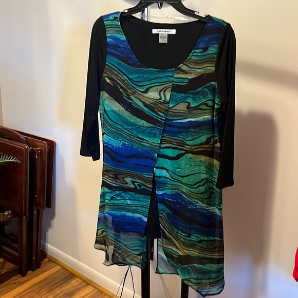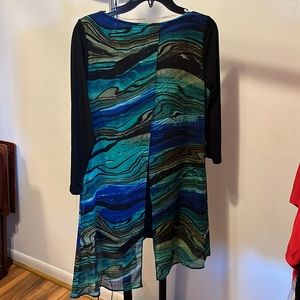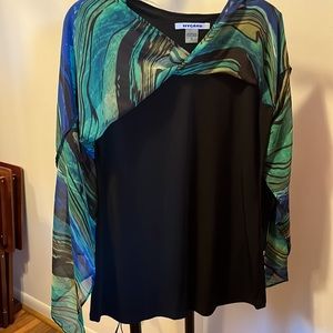 New Black under top cape with a green, blue and black overlap, crew cut neck, size S by Nygard