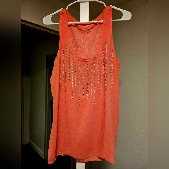 Bejeweled coral top/tee; Sz L; Very good condition