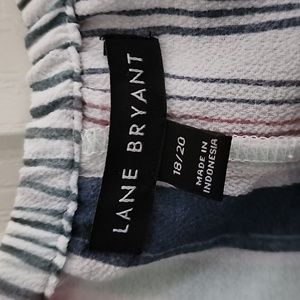 Multi color, blue with cream and red. Can be worn on or off the shoulder.