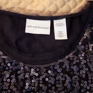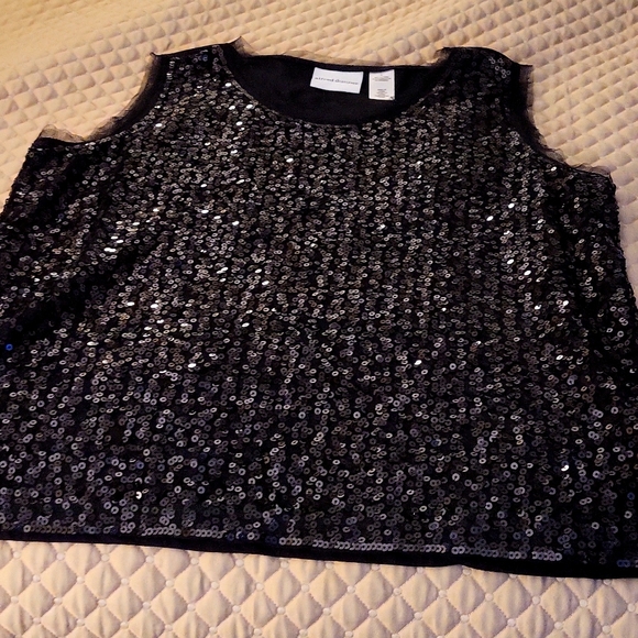 black sequence tank. knit back. shoulder to bottom 25". width 21" perfect condition