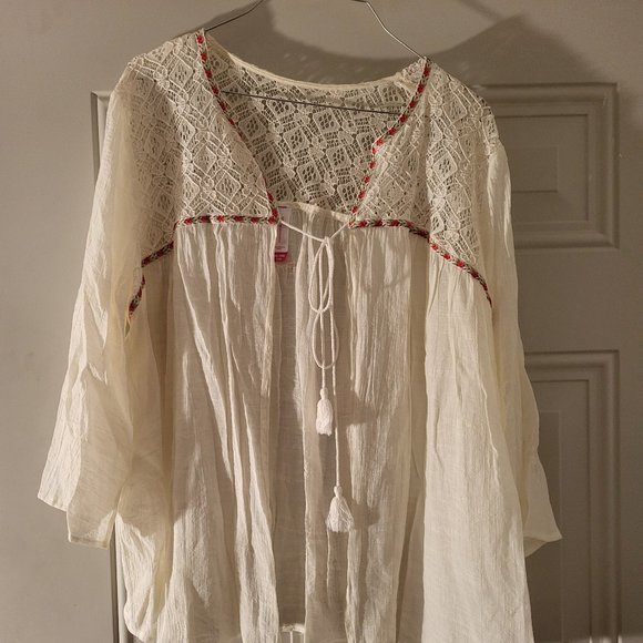 Cream colored open front 3/4 sleeve top Size XXL runs small Smoke and pet free home