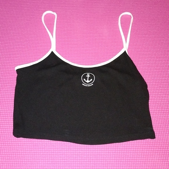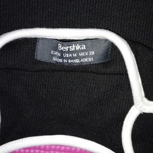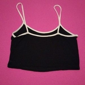 Black crop top with white straps for women. Size M. Brand is Bershka