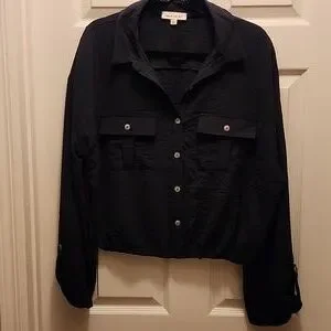 button down front 2 functional pockets tab sleeve elastic waist bottom new