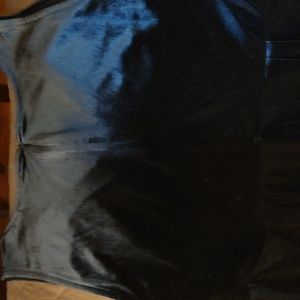 Sleeveless,v-neck, decor jewel on front,Velour, zipper back and slight flare at bottom.