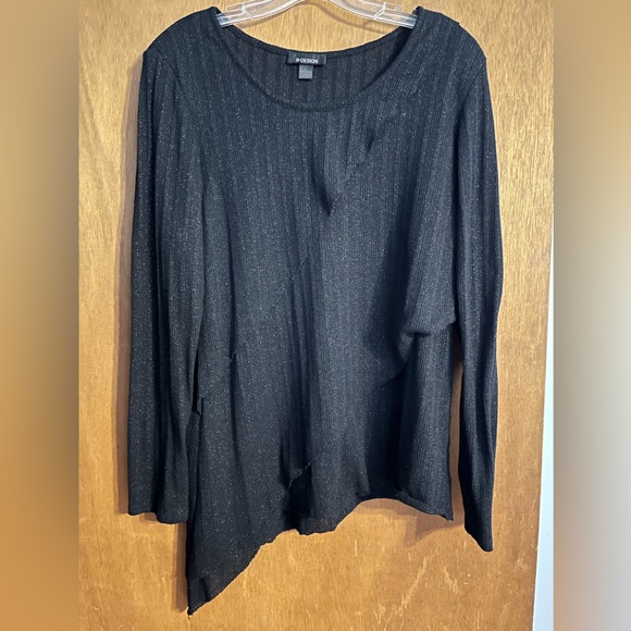 Worn once, this black top with slightly asymmetrical hem has just enough sparkle to go from office to evening or dress up a pair of jeans.