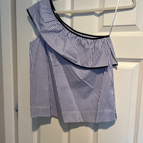One armed summer top With vertical Blue stripes