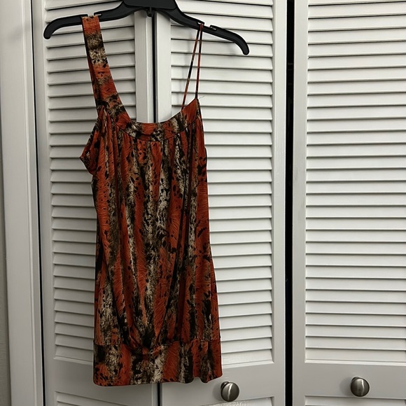 Taboga, multi-colored print, rust, orange, brown, tan, small.