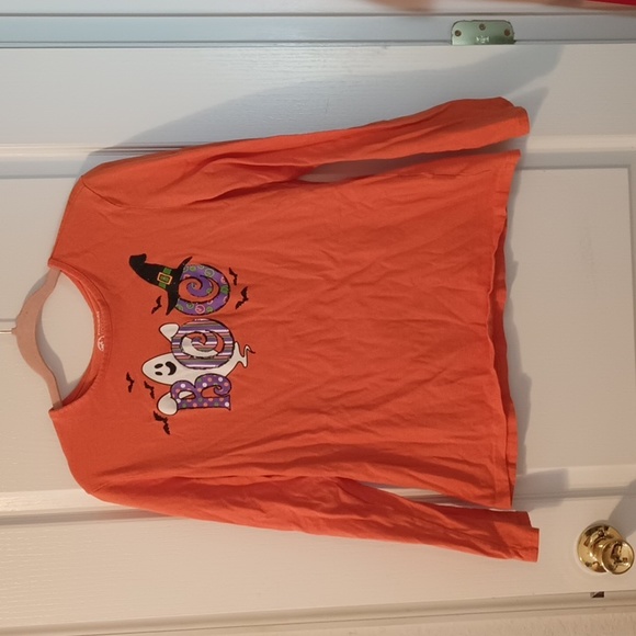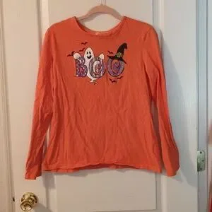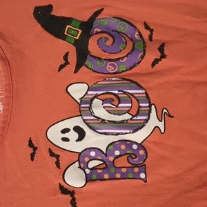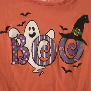 Halloween long sleeve shirt with ghost and bats says BOO