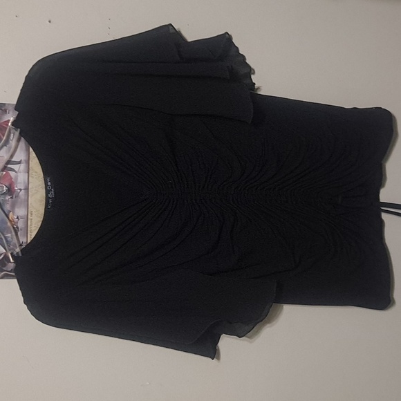 Black top. Flowy sleeves and drawstring front
