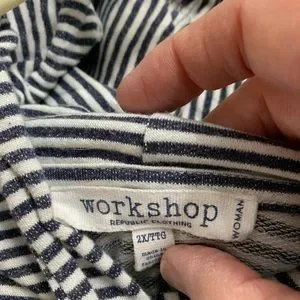 Blue & white top with hood. Brand: workshop Size 2x