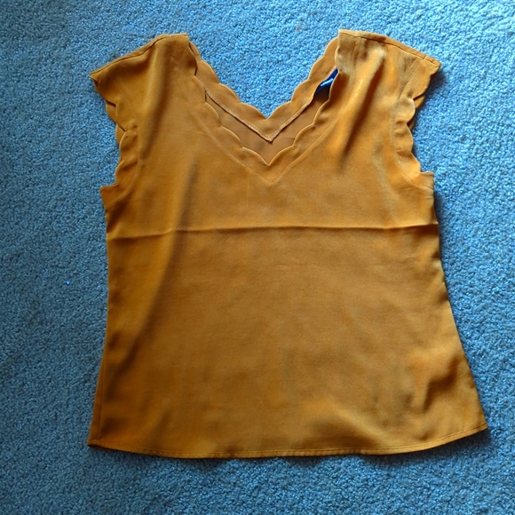 Mustard, gold, scalloped top from EXPRESS. Only worn a couple of times so no damages, stains or tears. Pet and smoke free. All offers welcome!