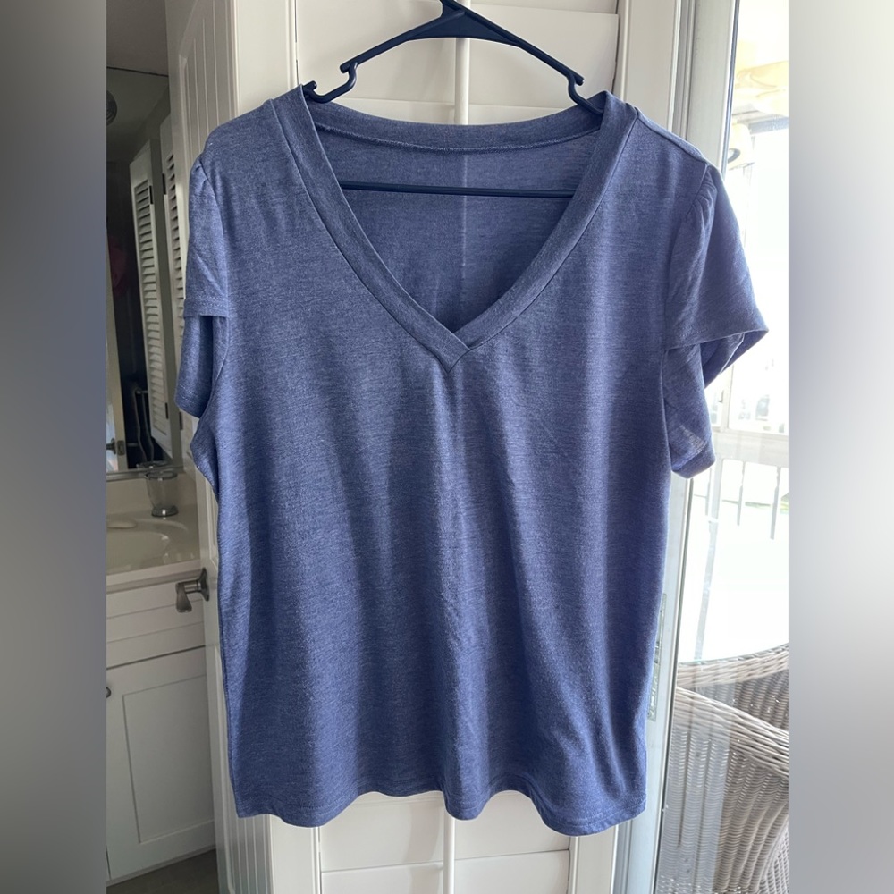 Blue V-neck with layer sleeve, smoking pet free home