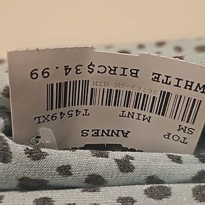 Brand new mint green with grey animal print. Long sleeve soft veck.