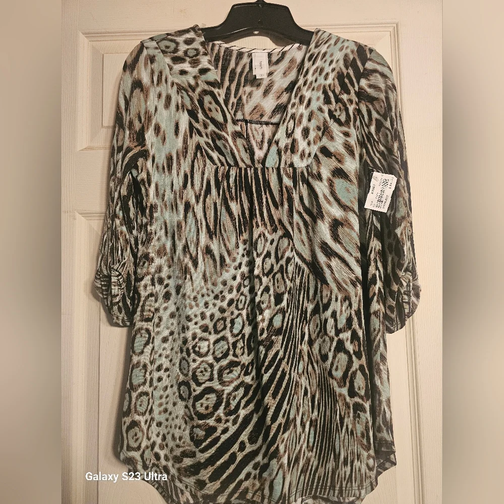 Brand new vnrck with quarter length sleeves. Mint brown and black animal print.