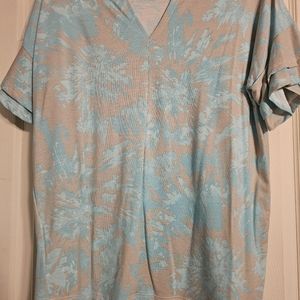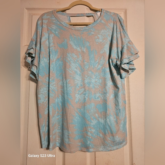 Brand new with double ruffle shirt sleeve aqua grayish beigh. vneck back.