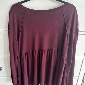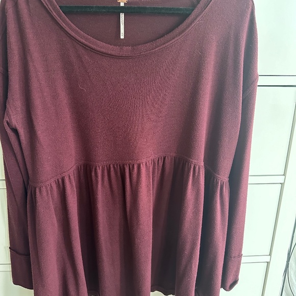 Women’s free people long sleeved babies doll top !! It’s a pretty burgundy wine color. Not red but no option for that color ♥️