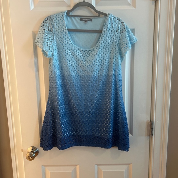 Brand new. Never worn. Beautiful blues. Can be worn casual or dressy. Smoke free home. No imperfections.