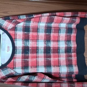 This is a gently used XXL red, brown cream, Mossimo Supply Co. top.