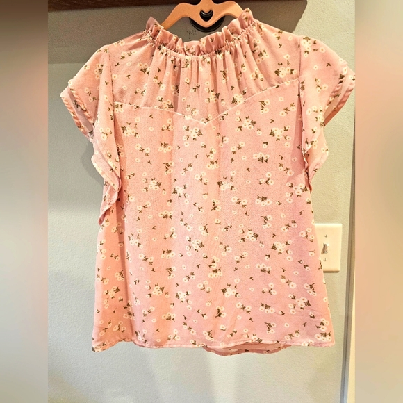Adorable, pink floral top 😍 We love this item! Pair with white pants, slides, and minimal jewelry.