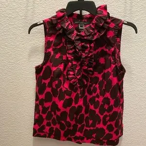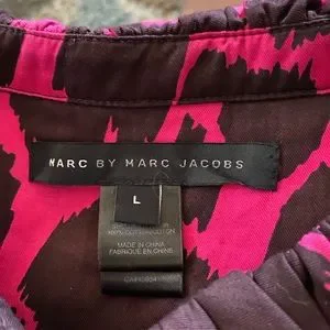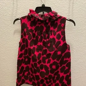 Marc by Marc Jacob’s black and fuchsia color sleveless top. Size L, Ruffled collar and part of the front. 100% cotton
