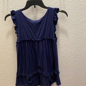 little yellow button top, round collar with some ruffled. Size Large. Navy blue color
