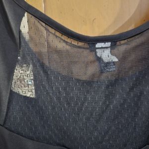 black with lace inlet short sleeve peblem top