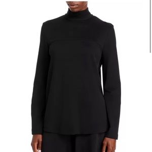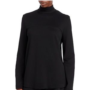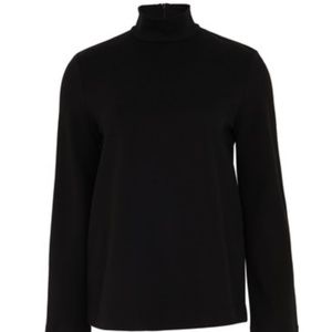 Long-sleeved sweater, high neck collar, tailored sleeve, flared sleeve, straight cut.