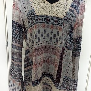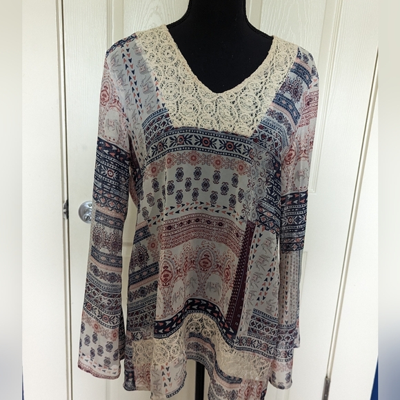 sheer tunic like blouse with a little lace in front