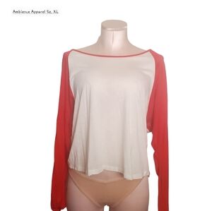 Baseball T w/Red Sleeves. Crop Top Style