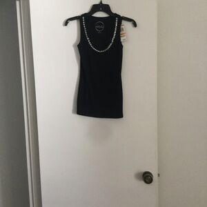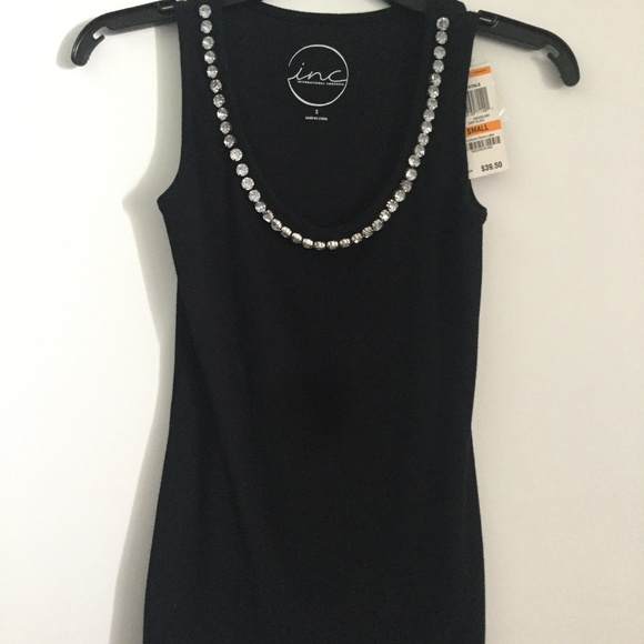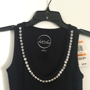 Brand new with tags still on it Bedazzled soft tank top purchased at Macy’s, I.N.C, size small, black.